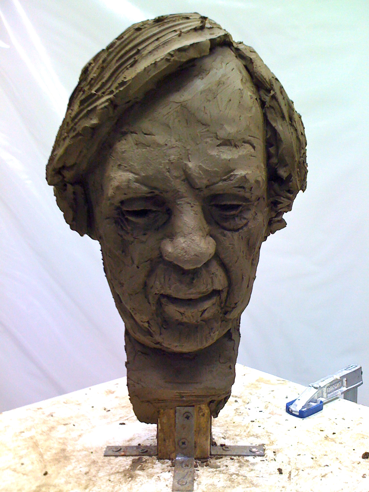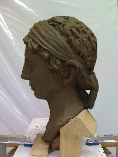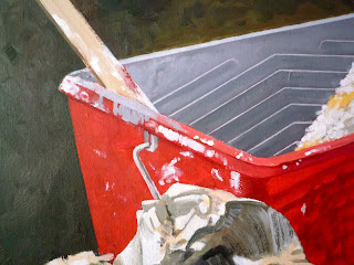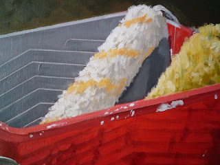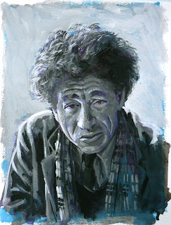 Ans, van het atelier tegenover het mijne (onthou die naam en kijk o.a. op http://wielverdiesen.com/thumbs/project.php), heeft een elftal prachtige negerportretten (mag je dat zo nog zeggen?) geschilderd, lekker snel en spontaan in een beperkt gehouden kleurengamma, wisselende formaatjes, niet te groot. De foto's die ik er vanavond van nam zijn allemaal de mist in gegaan, op deze na. Als antwoord maak ik nu portretten van Aziaten en ik hou het op pastel, aangezien ik daar nu even hevig aan verslingerd ben. Ik werk op donkerblauw karton en ik hou de lijnen rechtovereind, wrijf niet of nauwelijks iets uit. Linke soep, want met vegen kun je veel verdoezelen en nu blijft alles gewoon staan. Maar het wordt er wel lekker spontaan van, zoals deze.